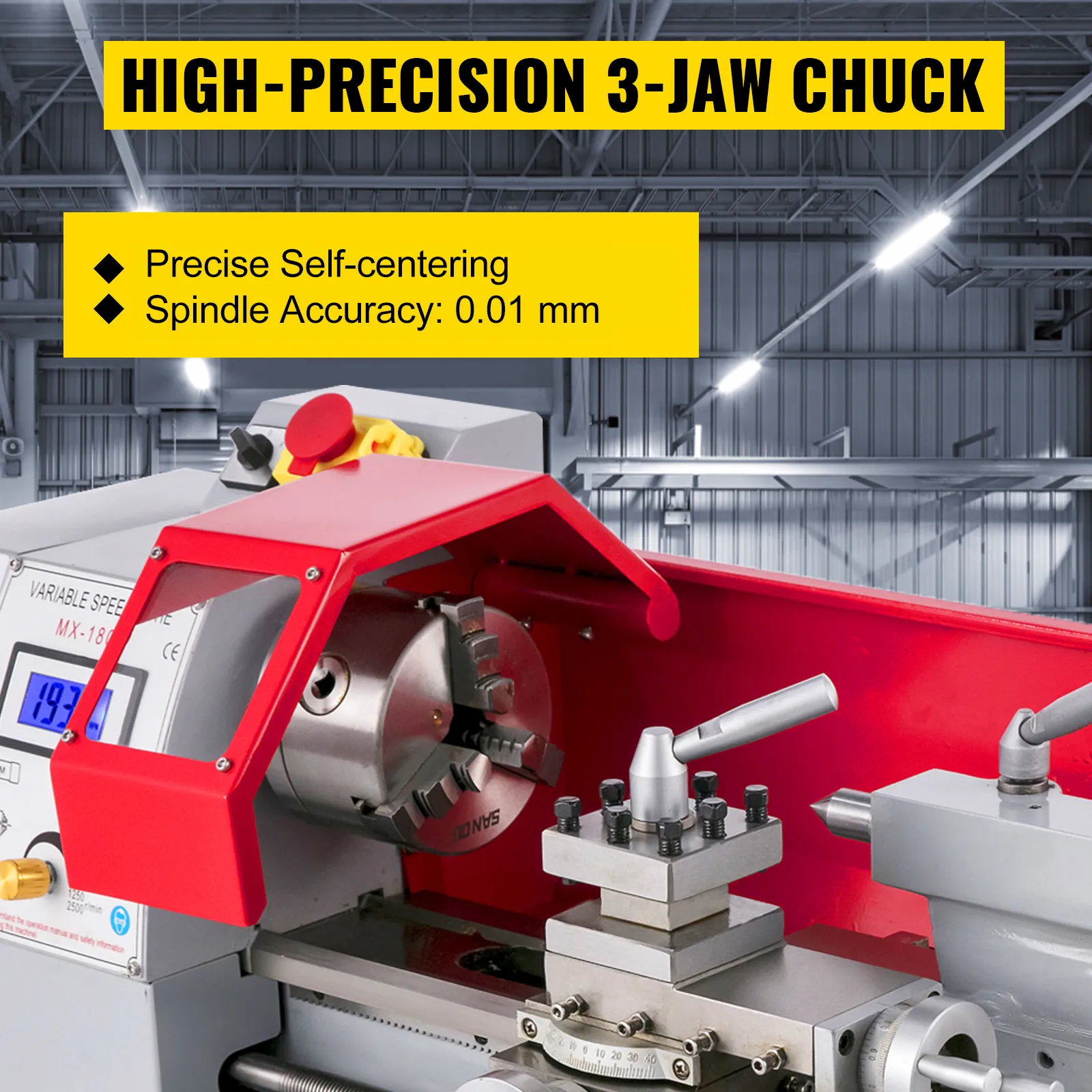 Mini tokarka jest wyposażona w uchwyt 3-szczękowy i otwór wrzeciona φ21 mm (około 0,8 cala). Uchwyt wyposażony jest w łożysko P3 i jest często używany do precyzyjnej obróbki przy dużych prędkościach.