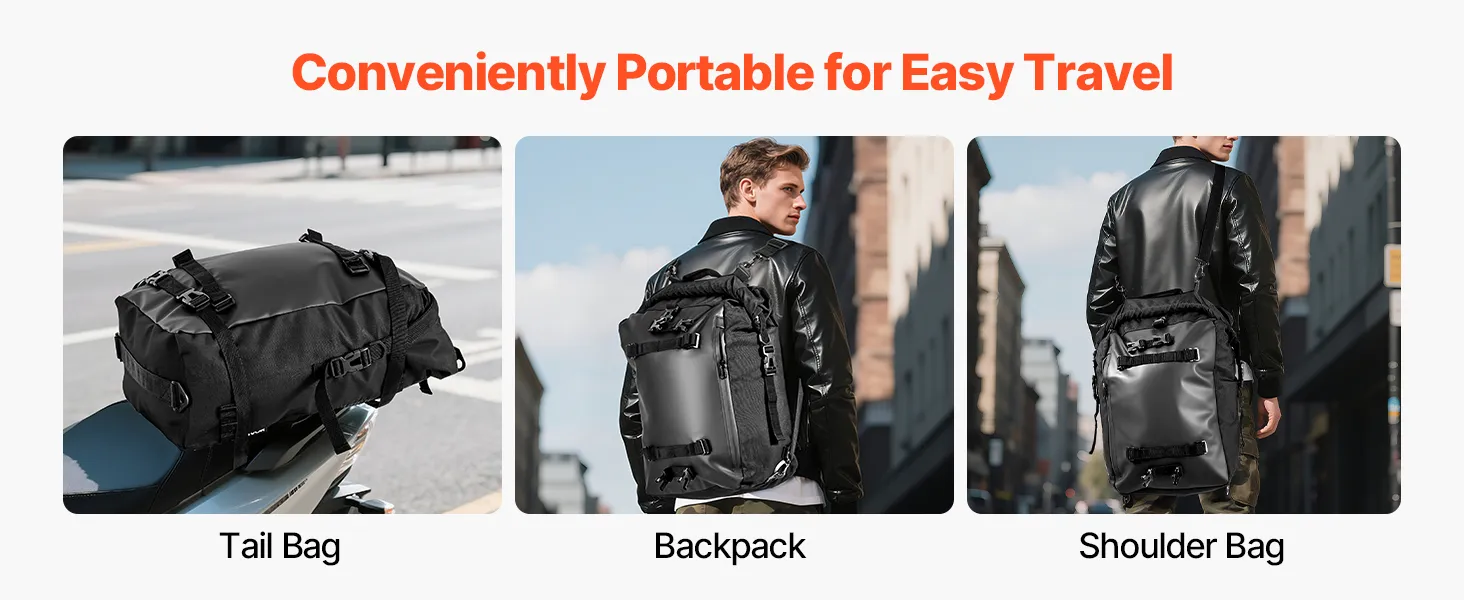 Torba wielofunkcyjna: Otwórz klamry, aby przekształcić tę torbę motocyklową na siedzenie w plecak lub torbę na ramię, co pozwala na wygodne noszenie jej z dala od motocykla. Idealna na codzienne dojazdy do pracy.