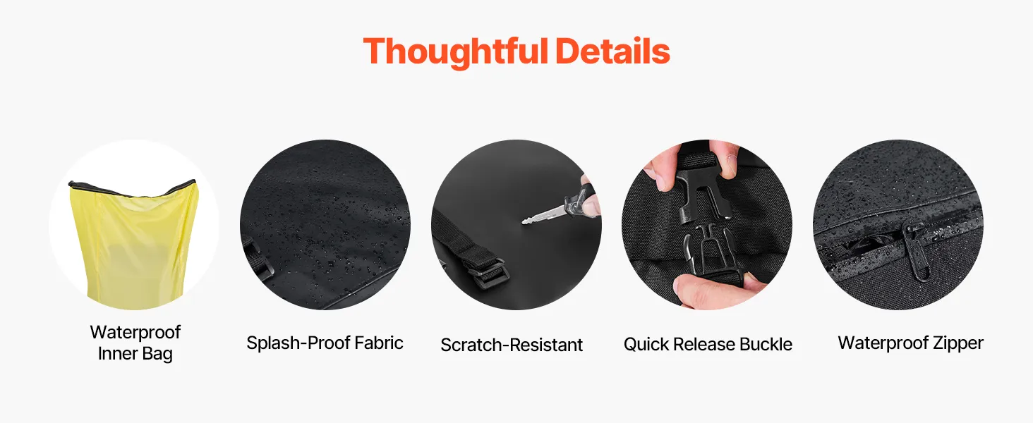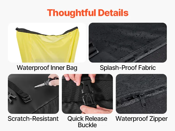 Praktyczna konstrukcja: Torba motocyklowa posiada zewnętrzne szlufki do mocowania dodatkowego sprzętu. Wysokiej jakości, wodoodporny zamek błyskawiczny zapewnia płynne działanie i zapobiega przedostawaniu się wody.