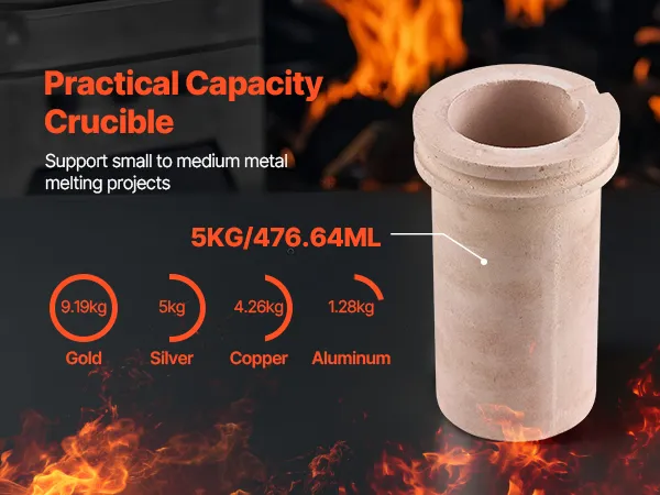 Wszechstronna pojemność: Ten elektryczny piec do topienia złota jest wyposażony w tygiel o wadze 5 kg i nadaje się do małych sztabek złota, biżuterii oraz różnych projektów odlewniczych DIY. Może topić złoto, srebro, miedź, aluminium i inne metale, zapewniając za każdym razem powtarzalne rezultaty.