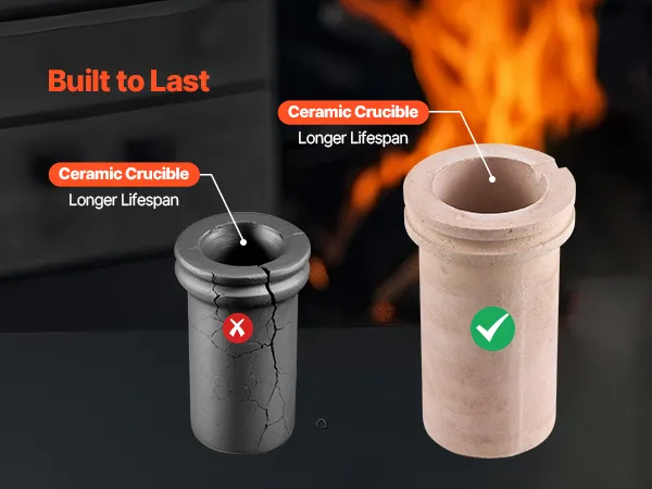Trwała konstrukcja: Ceramiczny tygiel w naszym piecu elektrycznym oferuje dłuższą żywotność niż konwencjonalne tygle grafitowe, minimalizując tym samym konieczność wymiany. Zintegrowana siatka zwiększa trwałość i stabilność, gwarantując niezmiennie wysoką jakość rezultatów w każdym procesie topienia.