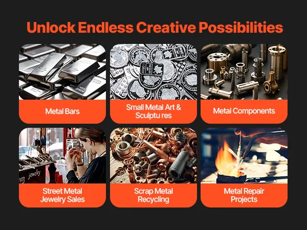Elastyczne możliwości rzemieślnicze: Zestaw pieca do topienia umożliwia tworzenie biżuterii, odznak i dzieł sztuki, a nawet ponowne wykorzystanie złomu w celu stworzenia unikatowych dzieł. Nadaje się do dużych, dobrze wentylowanych przestrzeni roboczych, oferując swobodę i wszechstronność w praktycznej pracy artystycznej.