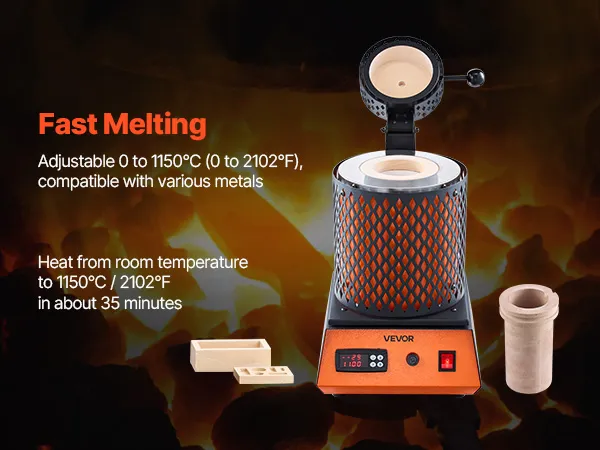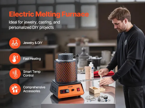 Dzięki kompaktowym rozmiarom i lekkiej konstrukcji, elektryczny piec do topienia metali o mocy 1500 W idealnie nadaje się do domowych studiów lub małych przestrzeni roboczych. Użytkownicy mogą go z łatwością przenosić i ustawiać w dowolnym miejscu, tworząc wygodne środowisko do odlewania metali, tworzenia biżuterii lub projektów DIY.