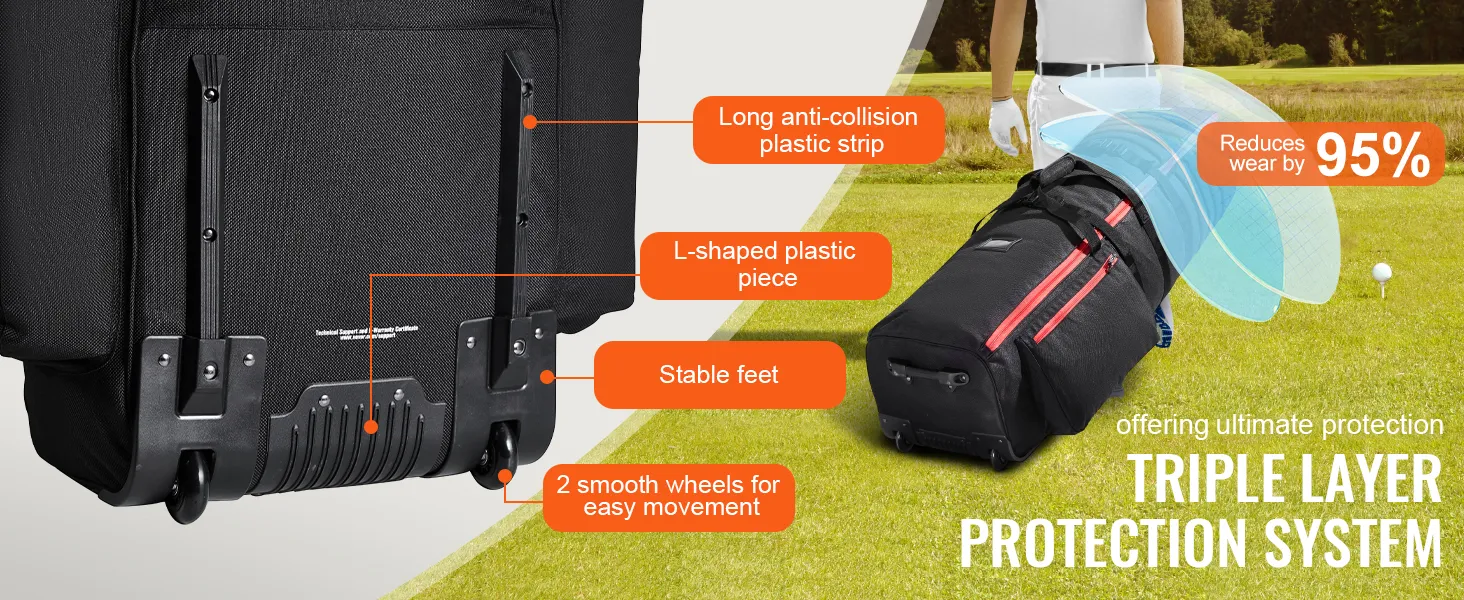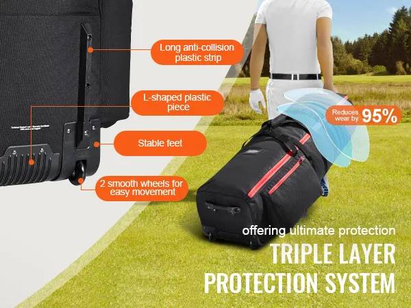 Bezpieczna i stabilna: Ta torba golfowa została zaprojektowana do przenoszenia wielu kijów i sprzętu, dlatego jest cięższa. Posiada kółka i uchwyt ułatwiający przenoszenie. Dzięki zoptymalizowanym kółkom i trójwarstwowemu systemowi ochrony (taśma z tyłu, dolny uchwyt i dolna podstawa) zmniejsza zużycie o 95%, zapewniając długotrwałe i płynne przenoszenie.