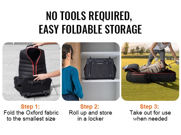 Ta składana torba podróżna do golfa idealnie sprawdzi się w każdej sytuacji, gdy wymagana jest mobilność, na przykład w pomieszczeniach i na zewnątrz, na polach golfowych lub w obiektach komercyjnych. Można ją rozłożyć w kilka sekund i jest gotowa do natychmiastowego użycia.