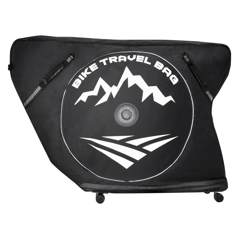 Triathlon Fit: This triathlon-bike travel bag fits 37–42 in (94–106 cm) wheelbases. You remove wheels and pedals, place them separately into the saddle cover, handlebar protectors, chain protector, and other protectors for secure transport
