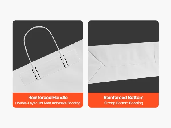 Duża ładowność: Ta papierowa torba na zakupy jest wykonana z papieru typu kraft o wysokiej gęstości 120 g/m², dzięki czemu jest wytrzymała i trwała. Uchwyt mocowany jest za pomocą dwuwarstwowego kleju topliwego, a spód jest wzmocniony, aby zapewnić lepszą odporność na ciężar