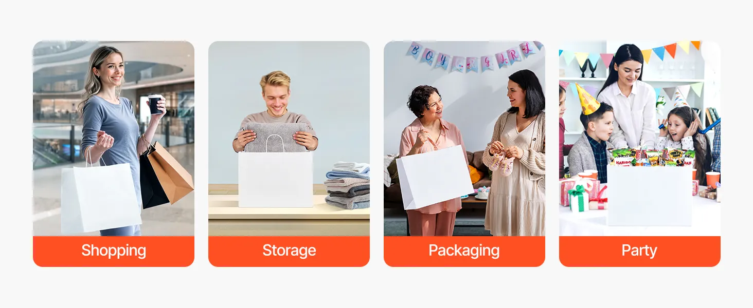 Uniwersalność: Te torby papierowe typu kraft nadają się do robienia zakupów, pakowania prezentów, przechowywania itp. Można je również spersonalizować, umieszczając na nich logo w celu promocji firmy. Spełniają Twoje różne potrzeby