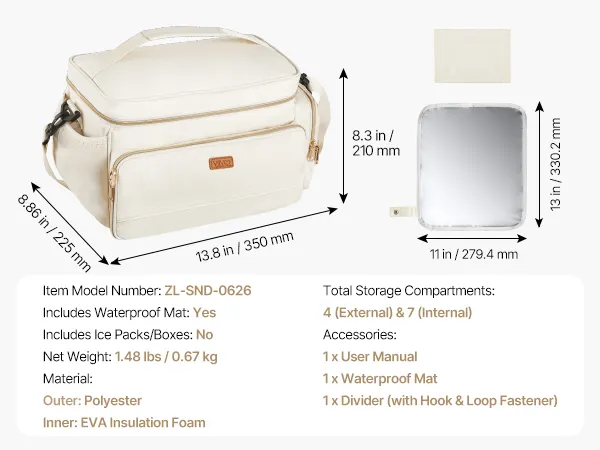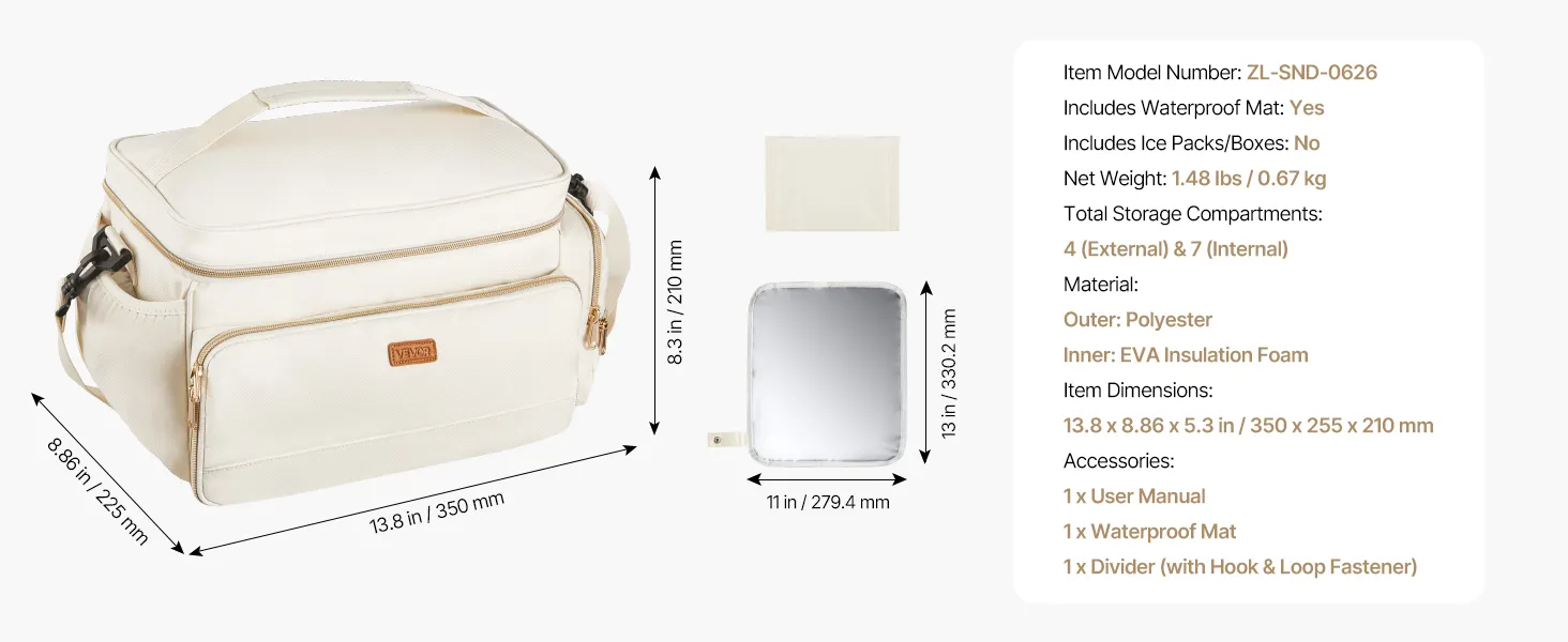 Torba na laktator VEVOR 350 x 255 x 210 mm, etui na laktator z wodoodporną matą, pasuje do modeli S1/S2, akcesoria do laktatora i przechowywanie mleka matki, do pracy, podróży i użytku rodzinnego, beżowa