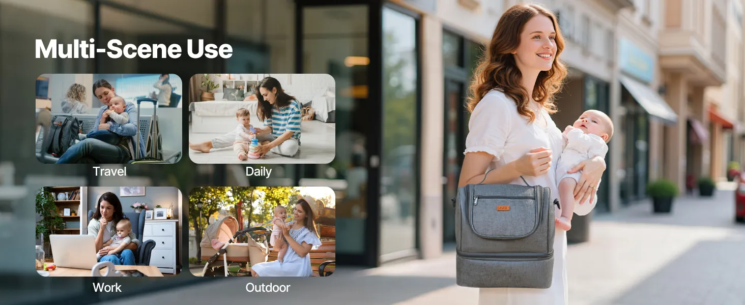 Łatwa w przenoszeniu: Nasza torba-lodówka na mleko jest wyposażona w wodoodporną matę, dzięki czemu możesz bezpiecznie umieścić laktatory, butelki i akcesoria w miejscach publicznych. To przemyślany wybór dla pracujących lub karmiących matek, które często są w ruchu.