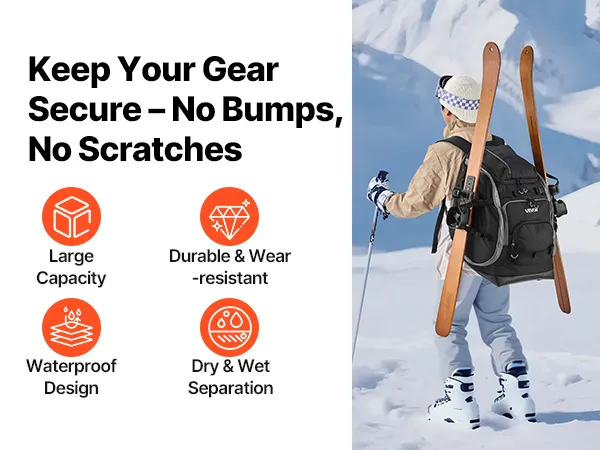 Nawet jeśli przechowujesz w nim kask, ubrania, gogle i inne ważne rzeczy, możesz łatwo przewozić w nim narty lub deskę snowboardową za pomocą tego plecaka na buty narciarskie.