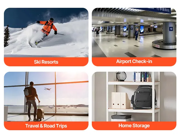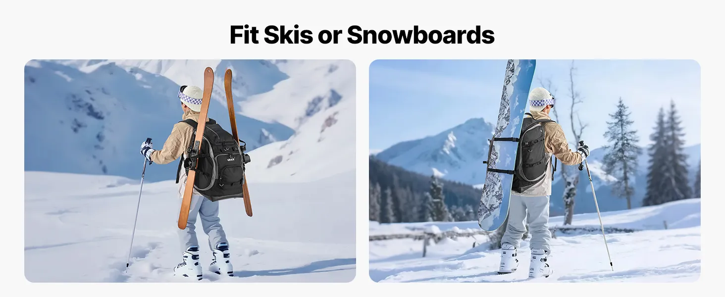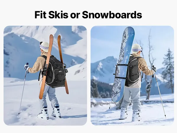 Możliwość noszenia snowboardu: Nasz plecak podróżny na snowboard z zewnętrznymi paskami umożliwia łatwe mocowanie deski. Składany tylny panel służy również jako podkładka, umożliwiając łatwą zmianę butów w dowolnym miejscu i zapewniając suchość stóp.