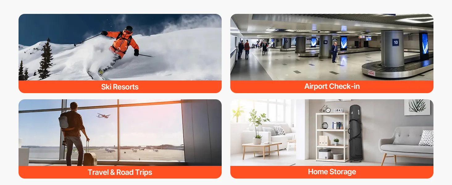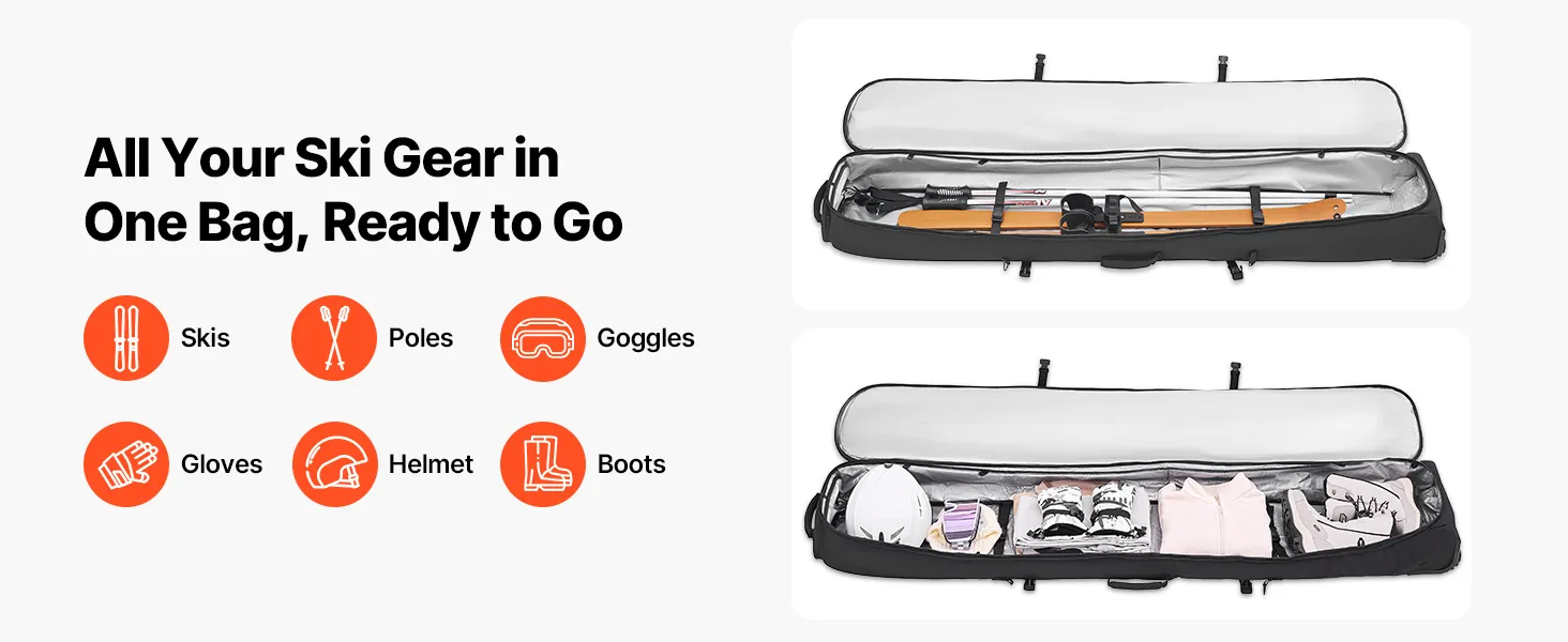 Ta torba na narty z kółkami do transportu lotniczego zapewnia bezpieczny i niezawodny transport Twojego sprzętu w ośrodkach narciarskich, w podróży lub w domu.