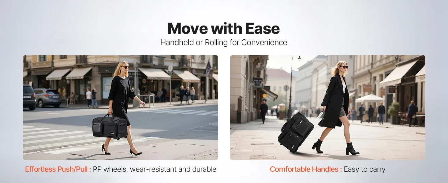 Ta torba podróżna o szerokości 23 cali / 584,2 mm z drążkiem na ubrania zapewnia miejsce na powieszenie ubrań i można ją nosić w ręce lub zwijać, co znacznie zwiększa wygodę przechowywania i podróży.