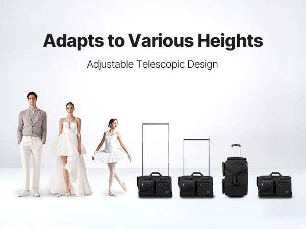 Ta odporna na przewrócenie torba na ubrania przekształca się w przenośną mini garderobę z regulowanym stojakiem o różnej wysokości. Posiada ponad 10 kieszeni, osłonę prywatności umożliwiającą szybką zmianę stroju i jest łatwa w transporcie dzięki portowi ładowania USB i wysokiej jakości kółkom. Wytrzymała, wodoodporna powłoka PU100 gwarantuje długą żywotność.