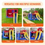 Wielofunkcyjna rozrywka: Ten dmuchany zamek z miejscem do skakania, wysoką zjeżdżalnią i ścianką wspinaczkową to doskonała rozrywka dla dzieci w wieku od 3 do 8 lat. Wysoka zjeżdżalnia wyposażona jest w wysoką barierkę zabezpieczającą i siatkę ochronną w najwyższym punkcie, co gwarantuje bezpieczeństwo i oferuje rodzinom różnorodną rozrywkę oraz możliwości wspólnych aktywności.