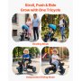 Trójkołowy rowerek VEVOR dla dzieci w wieku od 1 do 5 lat, rowerek biegowy z pałąkiem, składaną budką, regulowanym siedziskiem i koszykiem na zakupy, trójkołowy rowerek dziecięcy na prezent dla chłopców i dziewczynek, niebiesko-czarny