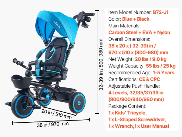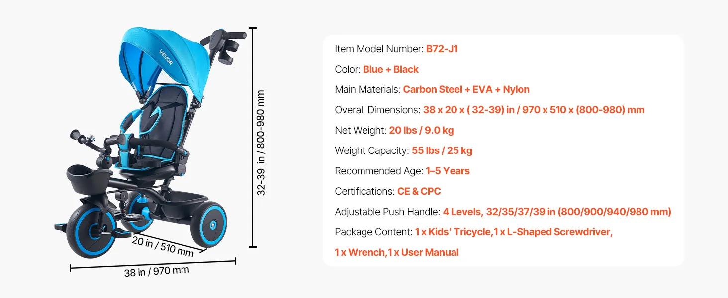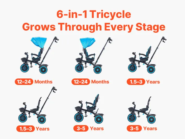 Regulowana konstrukcja: Siedzisko, kąt oparcia i pałąk bezpieczeństwa są regulowane, dzięki czemu każde dziecko znajdzie wygodną i bezpieczną pozycję na trójkołowcu.