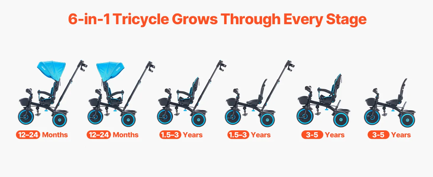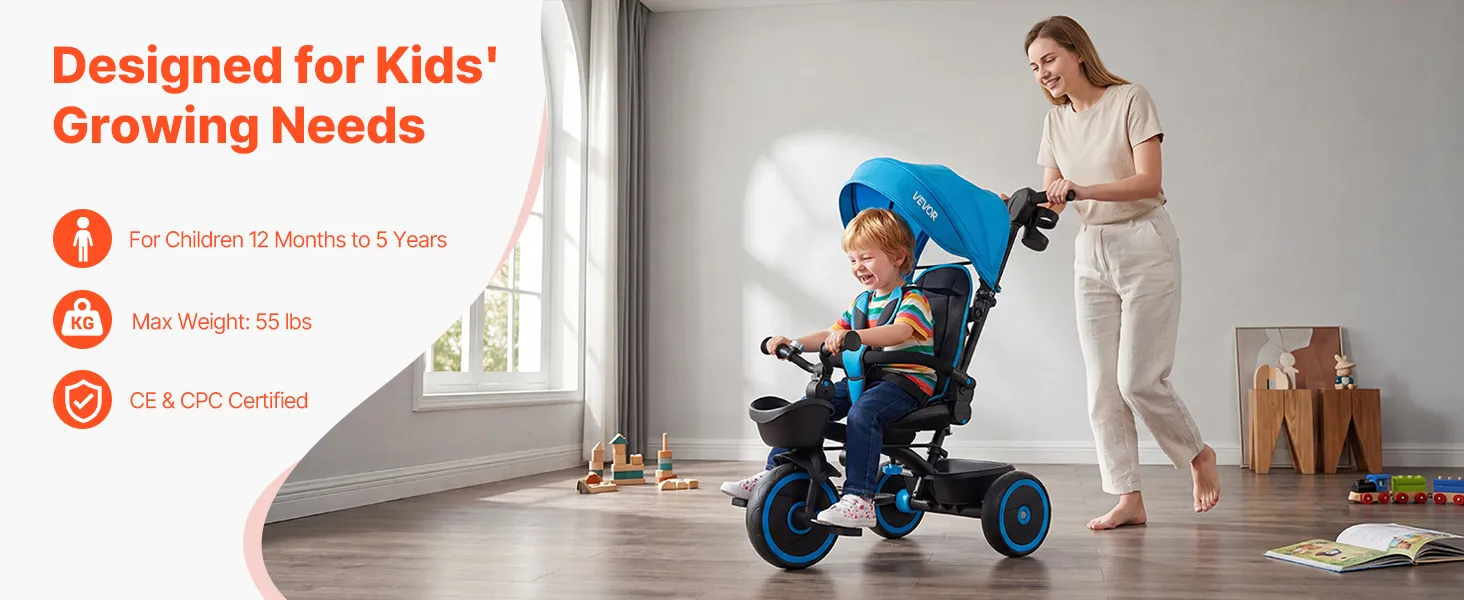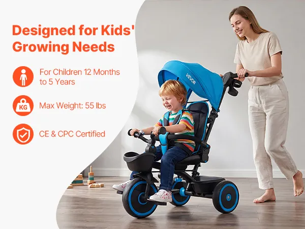 Ten trójkołowy rowerek dla maluchów jest odpowiedni dla dzieci w wieku od 12 miesięcy do 5 lat. Niezależnie od tego, czy dopiero uczą się chodzić, czy są już pewnymi małymi jeźdźcami – każdy może cieszyć się zabawą.