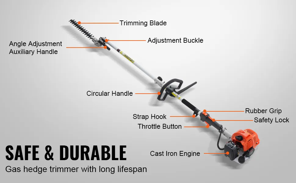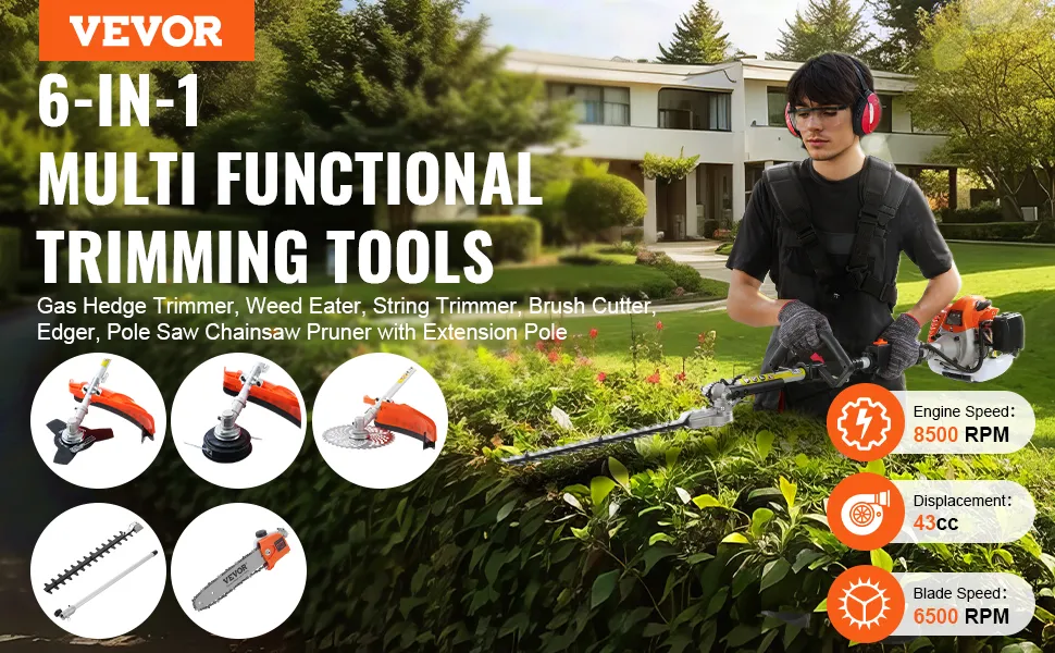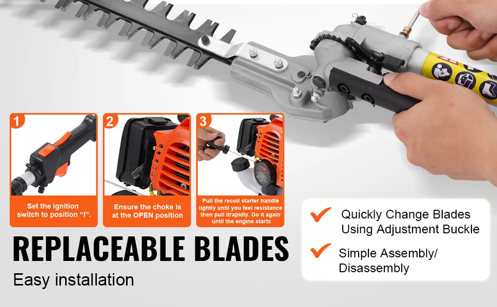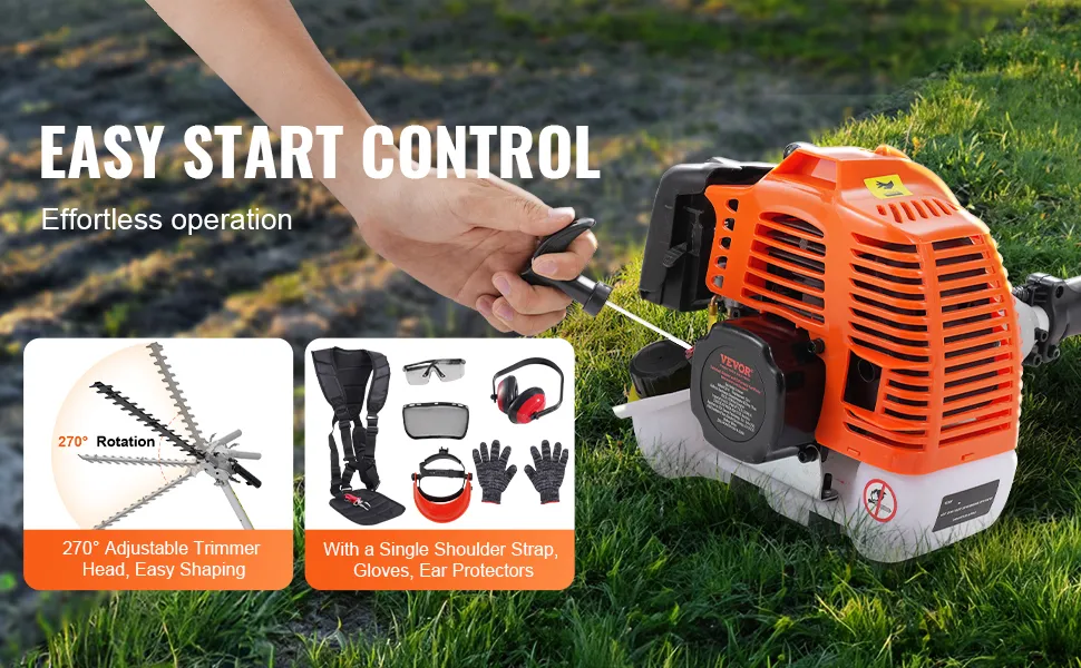 Podkaszarka do żywopłotów VEVOR 43CC jest bardzo prosta w użyciu. Narzędzia są dostarczane z czytelną instrukcją. Możesz je szybko zmontować bez pomocy profesjonalisty. Łatwa konfiguracja oszczędza czas i wysiłek. Narzędzia te są zaprojektowane z myślą o łatwej obsłudze. Dzięki temu nadają się zarówno dla początkujących, jak i profesjonalistów. Łatwy montaż zapewnia, że możesz zacząć używać narzędzi od razu. Ta funkcja zwiększa wygodę korzystania z wielofunkcyjnych narzędzi do przycinania.