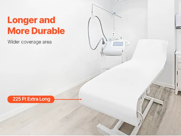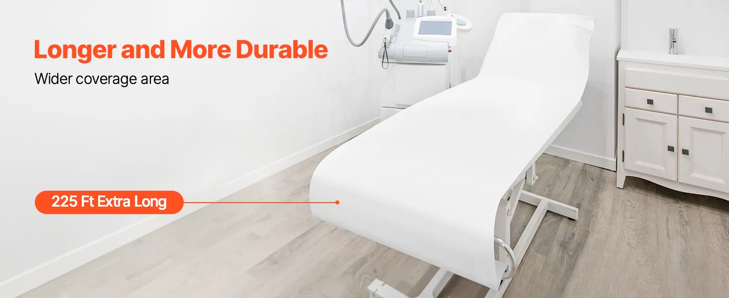Superchłonny: Ta rolka medyczna charakteryzuje się wysoką chłonnością, co skutecznie zapobiega przenikaniu płynów, utrzymuje powierzchnię suchą i zmniejsza ryzyko zakażeń krzyżowych, zapewniając pacjentom czystsze środowisko badania.