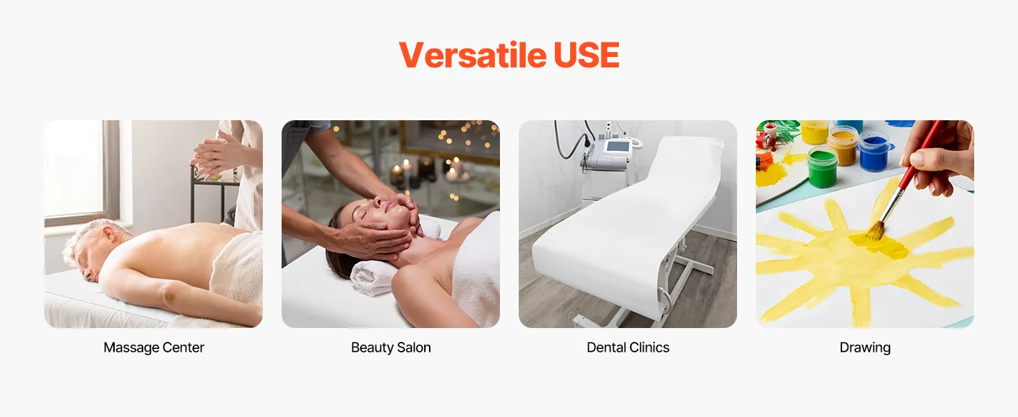 Wysokiej jakości, trwały materiał: Wykonany z wysokiej jakości masy drzewnej, ten papier na stół kliniczny waży 20 gramów na metr kwadratowy i charakteryzuje się doskonałą trwałością i odpornością na rozdarcie, zachowując integralność podczas użytkowania i zapewniając profesjonalne i uporządkowane środowisko.