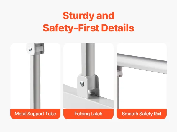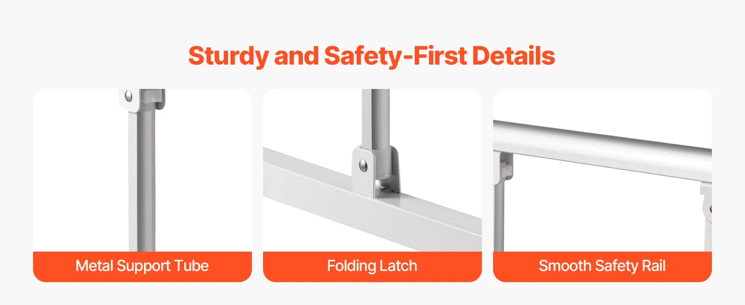 Bezpieczeństwo i niezawodność: Ta wysokiej jakości metalowa barierka zapewnia dorosłym stabilne podparcie i zmniejsza ryzyko upadków i urazów. Posiada poszerzoną ramę podstawy i dodatkową centralną rurę łączącą, aby zminimalizować chwianie się.