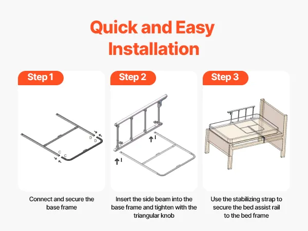 Szybki i łatwy montaż: Barierka łóżeczkowa dla seniorów jest łatwa w montażu, bez użycia narzędzi i pomocy fachowca. Wystarczy postępować zgodnie z instrukcją, a montaż zajmie kilka minut.