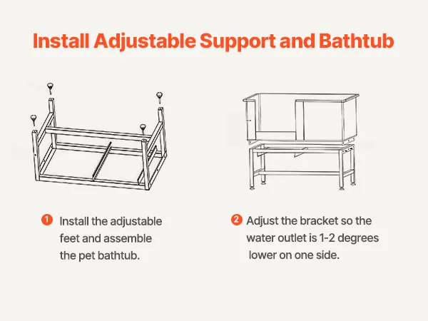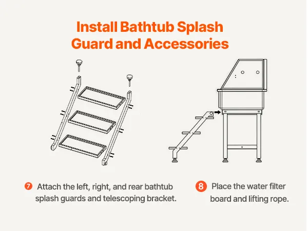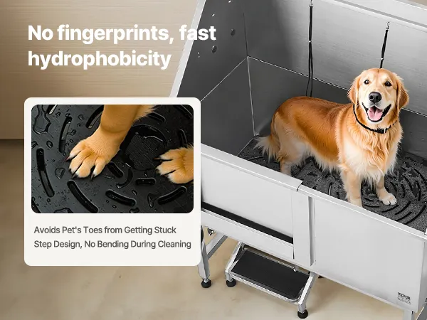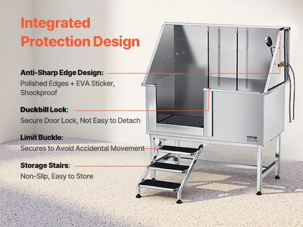 Antypoślizgowe i szczelne: Ulepszony system uszczelnienia i antypoślizgowe stopnie z otworami ograniczającymi zapewniają stabilność i zapobiegają chwianiu się i poślizgom, gdy zwierzęta wchodzą i wychodzą. Zestaw odpływowy zapobiega powstawaniu nieprzyjemnych zapachów i gwarantuje, że podczas kąpieli nie będzie gromadzić się ani nie dojdzie do przecieków wody.