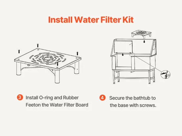 Ulepszona deska filtrująca wodę: Antypoślizgowa, teksturowana deska filtrująca wodę zapobiega przytrzaśnięciu łap, zapewniając bezpieczniejszą kąpiel. Dzięki ładowności 150 kg jest stabilny i niezawodny, a także pozwala na bezstresową kąpiel zwierząt domowych każdej wielkości.