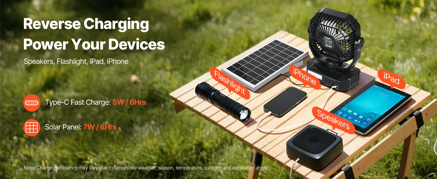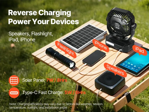 Niezależnie od tego, czy wybierasz się na kemping, na ryby, na piknik czy do grilla, ten wielobiegowy wentylator solarny szybko schłodzi powietrze, pozwalając Ci w pełni cieszyć się aktywnością na świeżym powietrzu.
