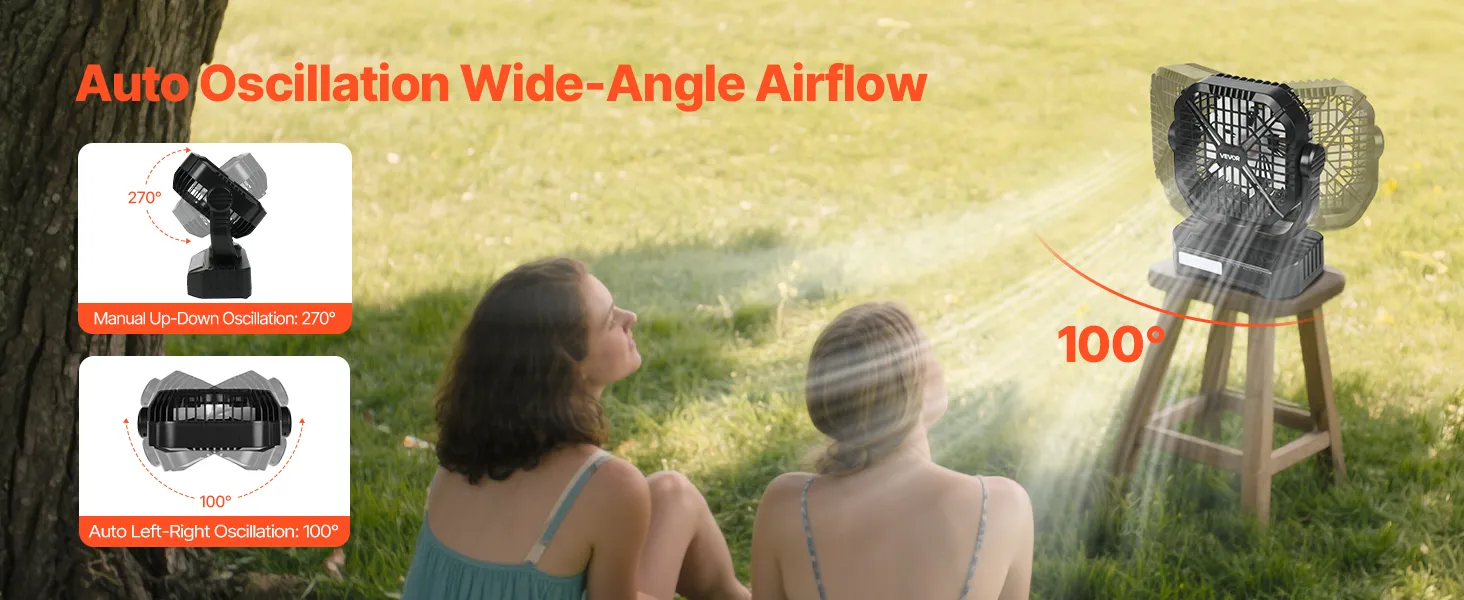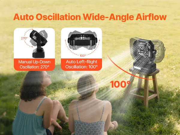 Dzięki automatycznej oscylacji lewo-prawo i ręcznemu pochylaniu w górę i w dół ten wentylator zapewnia szerokie chłodzenie całego ciała, dzięki czemu zachowujesz świeżość.