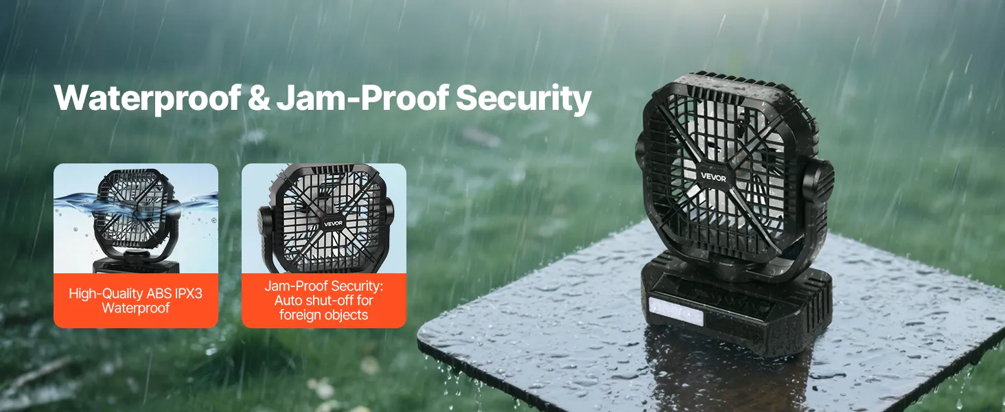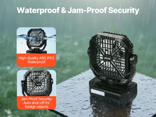 Wykonany z wysokiej jakości, wodoodpornego materiału ABS, wentylator posiada konstrukcję zabezpieczającą, która automatycznie wyłącza się w przypadku przeszkody, zapewniając w ten sposób bezpieczną i stabilną pracę.