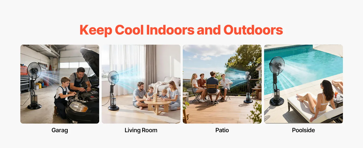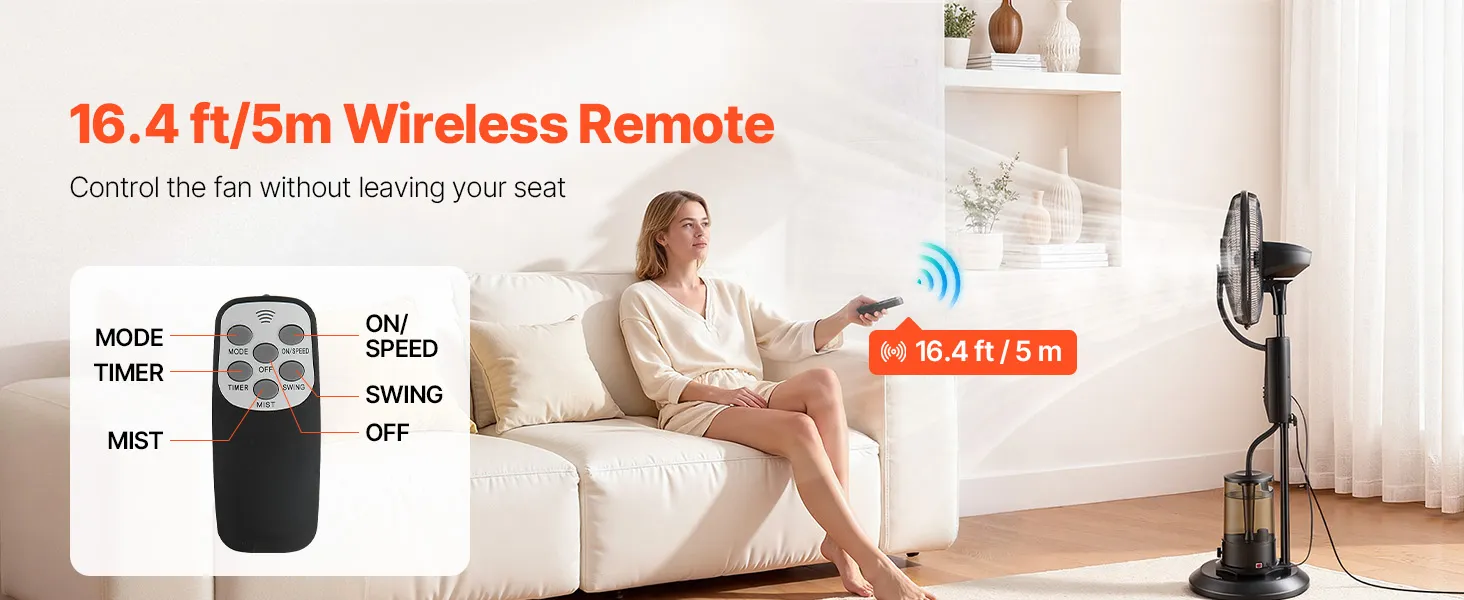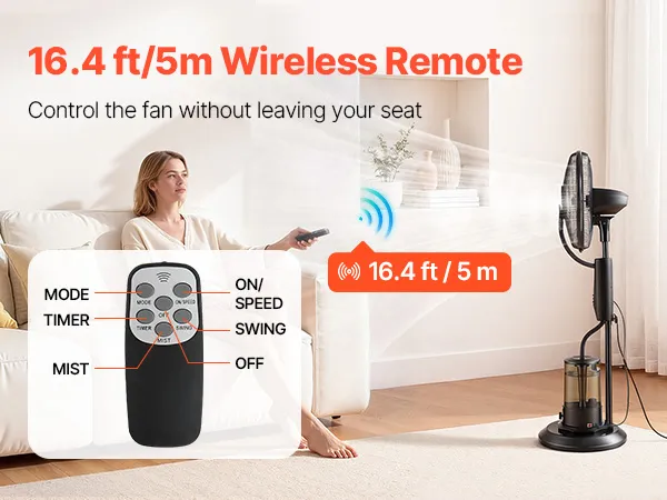 Wyposażony w 5-metrowego pilota, ten wentylator zewnętrzny VEVOR umożliwia wygodną obsługę z odległości. Możesz regulować prędkość, zmieniać tryby pracy lub ustawić timer – dzięki czemu możesz cieszyć się przyjemnym chłodem i komfortem w swoim ulubionym miejscu.