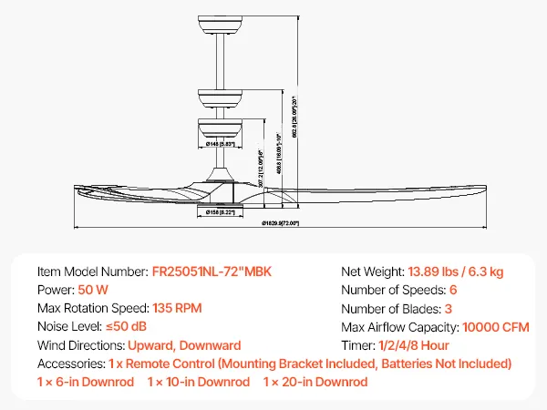 Pilot zdalnego sterowania: Wyposażony w wielofunkcyjny pilot zdalnego sterowania, nasz wentylator sufitowy z oświetleniem pozwala na łatwą regulację prędkości wentylatora, timera i innych funkcji bez konieczności wstawania, dzięki czemu możesz wygodnie cieszyć się przyjemnym przepływem powietrza.