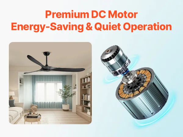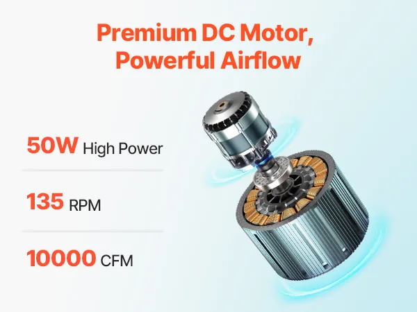 Cichy silnik prądu stałego: Ten wentylator sufitowy do sypialni wyposażony jest w wysokowydajny silnik prądu stałego o mocy 30 W, zapewniający przepływ powietrza do 10 000 CFM i niski poziom hałasu poniżej 50 dB, co pozwala cieszyć się cichą i przyjemną bryzą. Nawet późno w nocy, niski poziom hałasu nie zakłóci Twojego snu, pozwalając cieszyć się spokojną i chłodną letnią nocą.