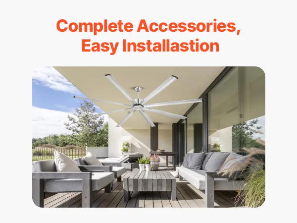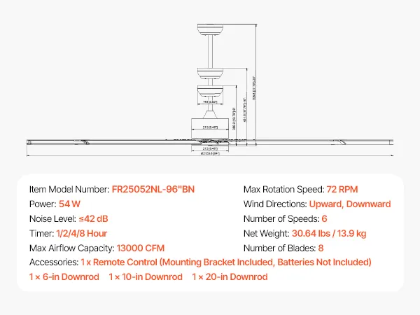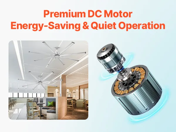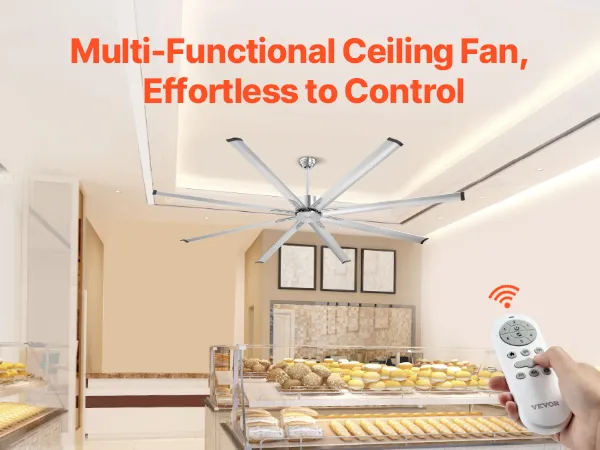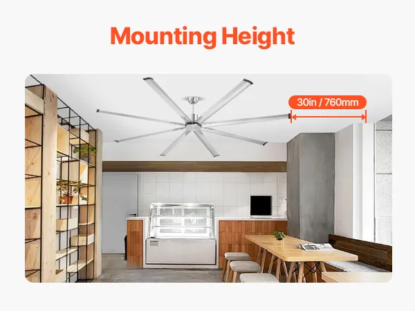 Trwałe aluminiowe łopatki: Ten wytrzymały wentylator sufitowy ma konstrukcję z 8 łopatkami. Wykonane z wytrzymałego aluminium łopatki charakteryzują się wyjątkową trwałością i stabilnym przepływem powietrza, gwarantując lata niezawodnej pracy.