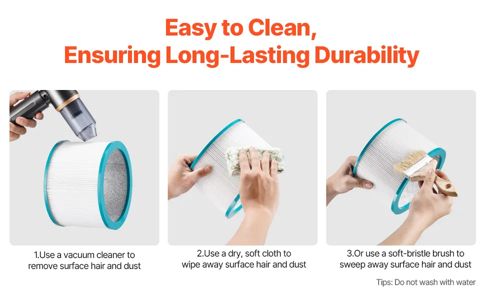 Nasz mini filtr zamienny zawiera zmywalny plastikowy filtr wstępny, który z łatwością wychwytuje włosy i kurz, zapewnia niezakłócony przepływ powietrza, redukuje ilość zanieczyszczeń i wydłuża żywotność wkładu. UWAGA: Filtr HEPA nie jest zmywalny.