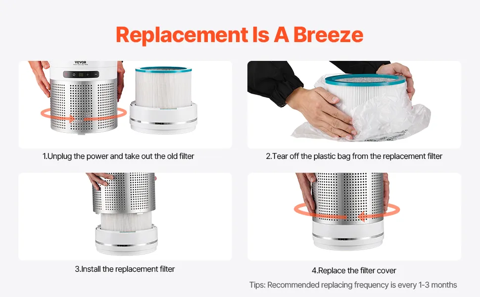 Łatwa obsługa: Nasz filtr wymienny został zaprojektowany z myślą o łatwości użytkowania, dzięki czemu jego montaż, demontaż i transport są proste. Można go z łatwością przenieść do dowolnego pomieszczenia, dzięki czemu możesz cieszyć się czystym powietrzem w dowolnym miejscu.