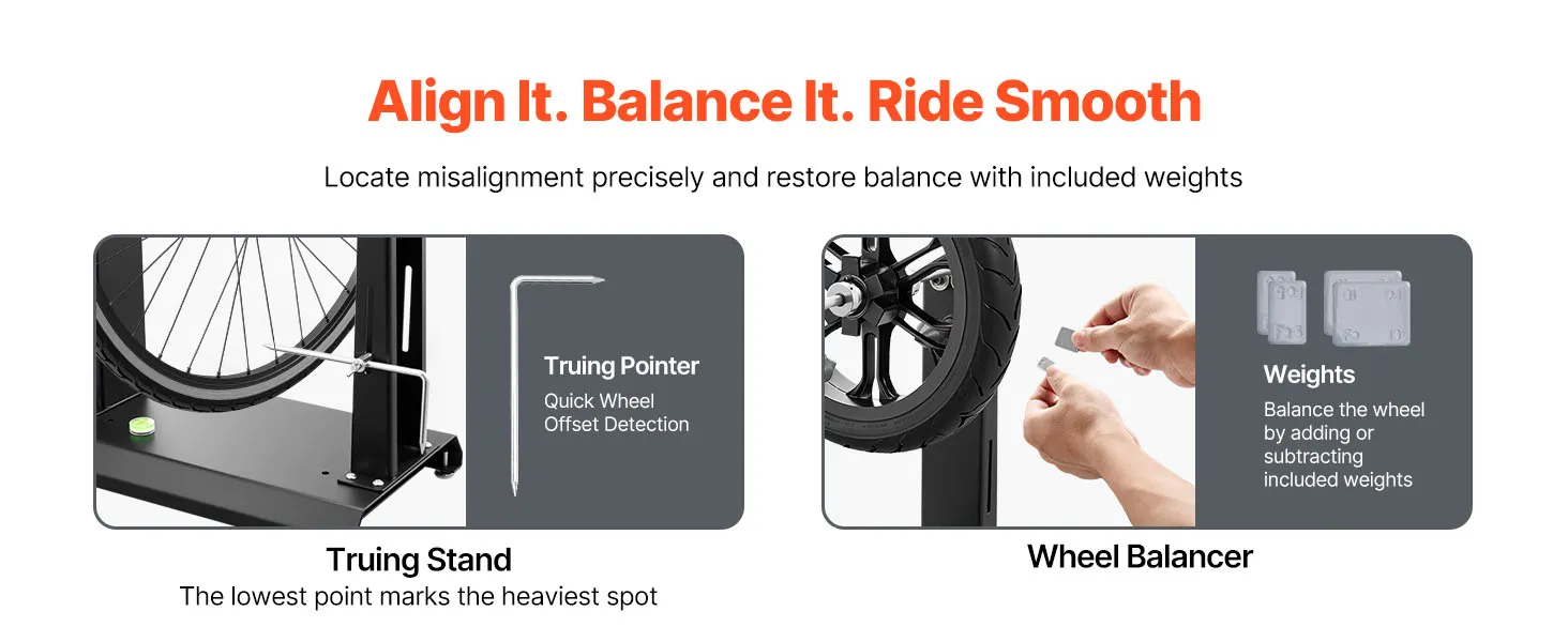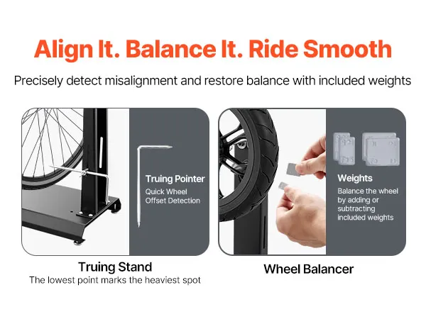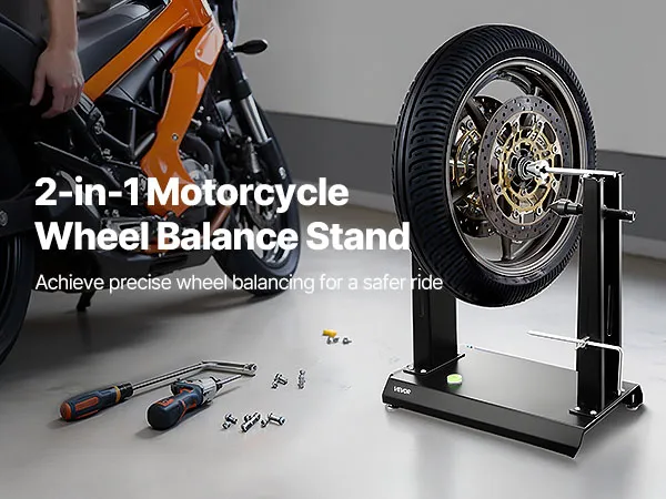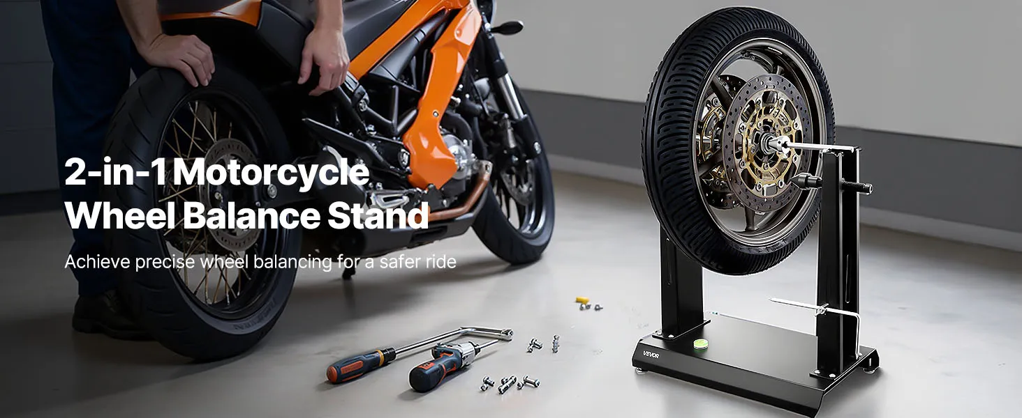 Wyważarka i centrownica kół: Ta wyważarka motocyklowa pomaga zidentyfikować najcięższy punkt koła i skorygować niewyważenie poprzez dodanie obciążników po przeciwnej stronie felgi. Równomiernie rozkłada masę, redukuje drgania przy dużych prędkościach i zapewnia płynniejszą jazdę.