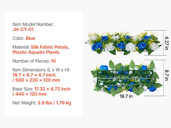 VEVOR Sztuczne kwiaty, opakowanie 10 szt., 500 x 220 x 120 mm, Kule kwiatowe, Centralne elementy weselne, Kompozycje ze sztucznych róż na centralne elementy weselne, Dekoracja domu, Róże w kolorze niebieskim i białym