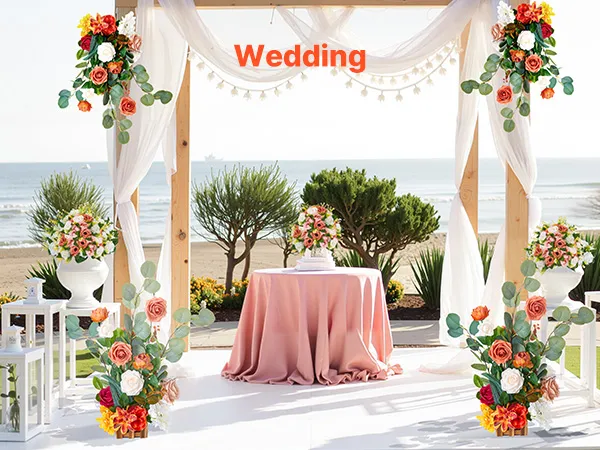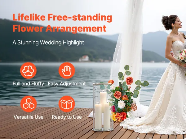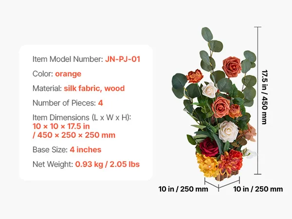 VEVOR Sztuczne kompozycje kwiatowe, 4 sztuki, 450x250x250 mm Sztuczne dekoracje kwiatowe, pomarańczowe kwiaty jako centralne elementy na wesela, ceremonie, przyjęcia, dekoracje stołów i domu