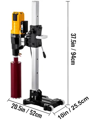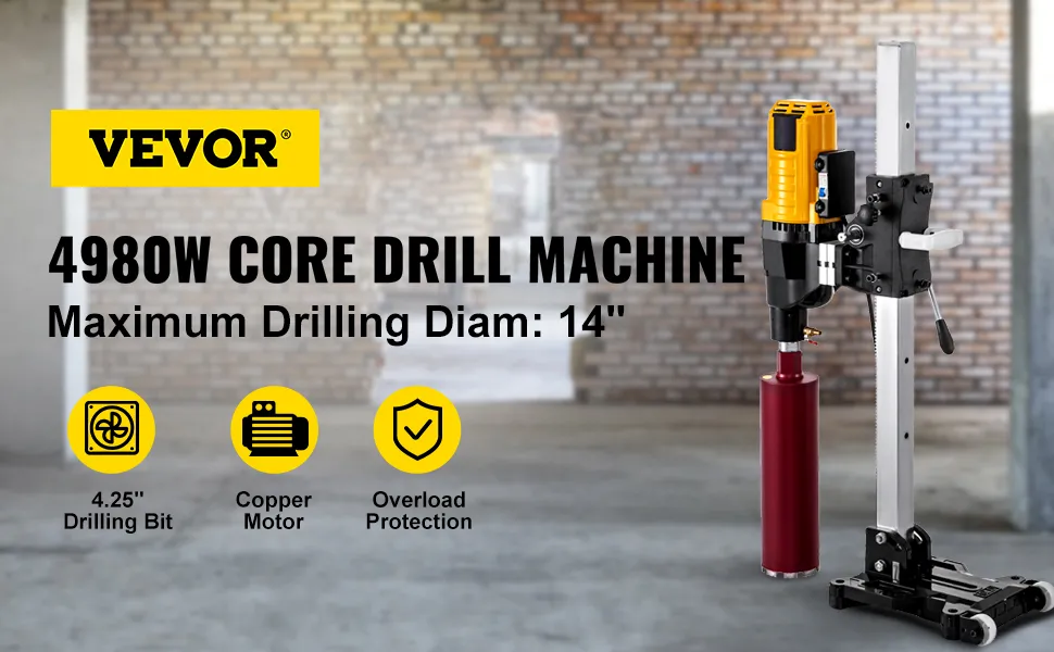 Maksymalna średnica wiercenia 355 mm: nasza wiertarka rdzeniowa generuje niezwykłą moc dzięki miedzianemu silnikowi o mocy 4800 W. Maksymalna prędkość: 500 obr./min. Maksymalna średnica wiercenia rdzeniowego: 355 mm. Co ważniejsze, na zdjęciu znajduje się wiertło 108 mm.