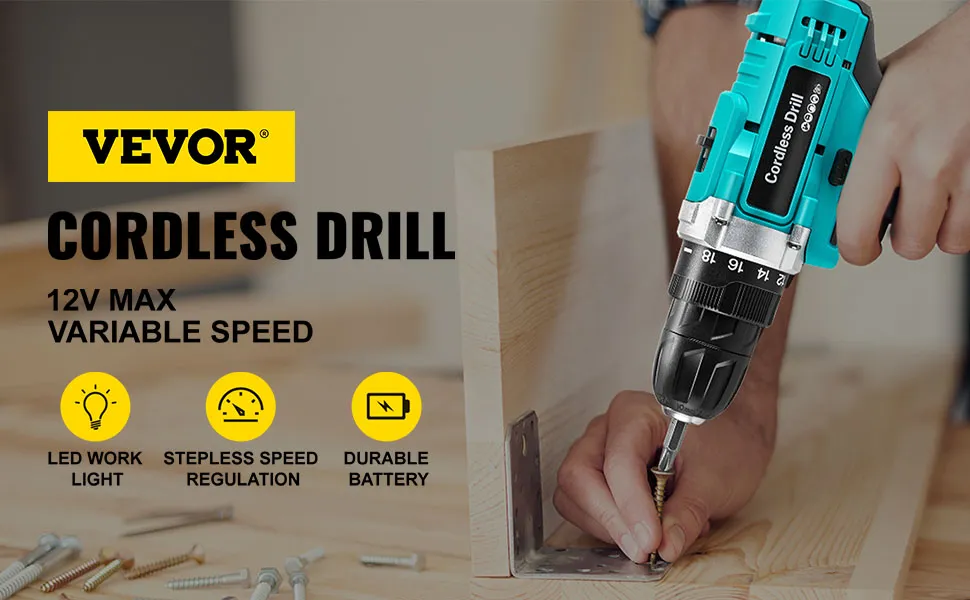 Wiertarko-wkrętarka akumulatorowa 12 V firmy VEVOR to właściwy wybór do wymagających zadań związanych z wierceniem i wkręcaniem. Ta bezszczotkowa wiertarka jest wyposażona w sprzęgło z 18 regulowanymi pozycjami i maksymalnym momentem obrotowym 35 Nm (310 in.lbs), zapewniając wszystkie codzienne potrzeby. Wysoki moment obrotowy i wygoda ustawień 2-biegowych pozwalają wiertarce radzić sobie z zastosowaniami w materiałach od drewna i metalu po ceramikę i płyty gipsowo-kartonowe. Jest to bardzo lekka, poręczna wiertarka, która dobrze leży w dłoni. Poczujesz, że dzięki temu praca stała się bardziej zrelaksowana. To fantastyczne narzędzie dla majsterkowiczów, elektryków czy hydraulików.