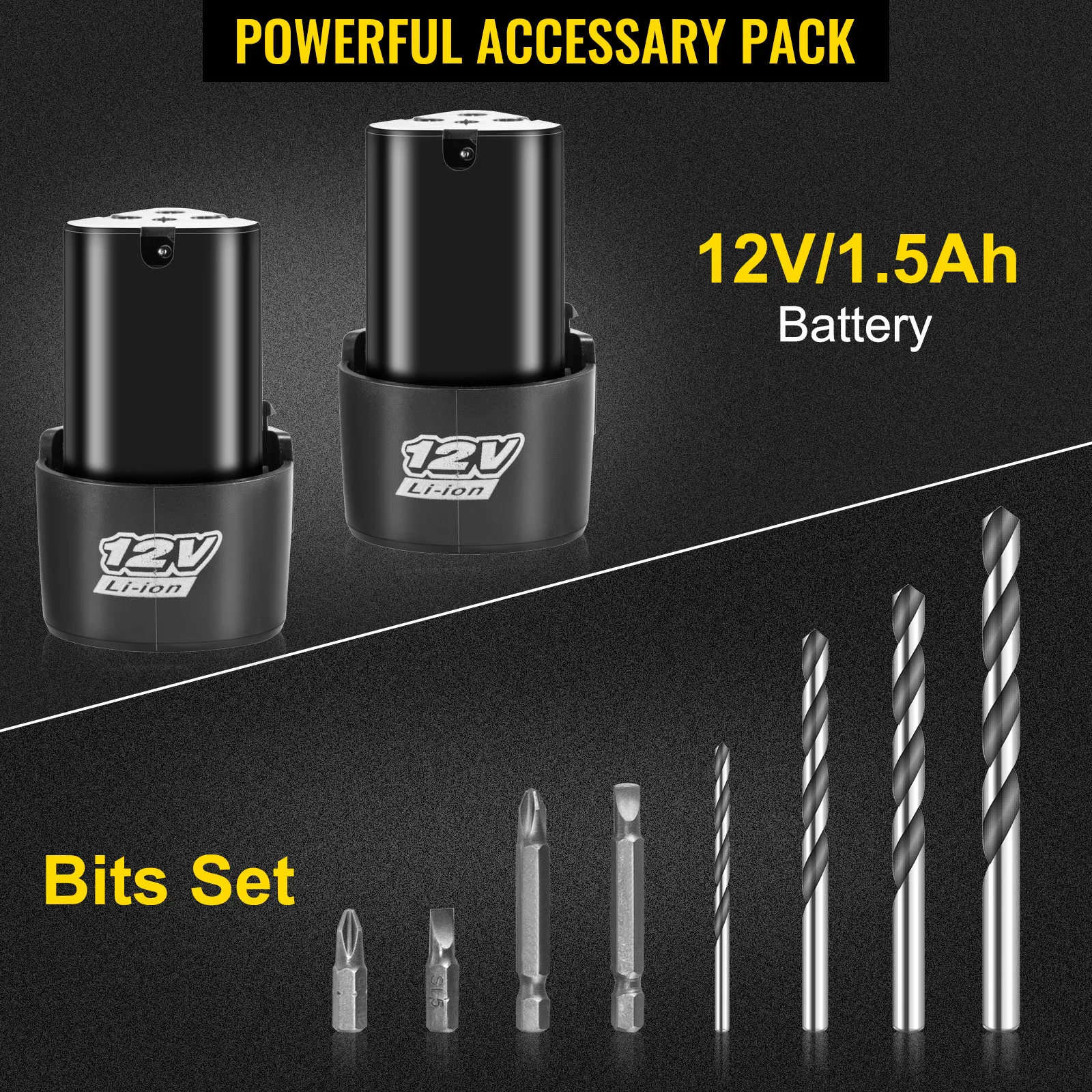Dzięki dwóm akumulatorom litowo-jonowym 12 V/1,5 Ah i szybkiej ładowarce ta kompaktowa wiertarka może służyć przez długi czas. Nasz produkt wraz z wiertarkami sprawia, że praca jest bardzo wygodna bez żadnych ograniczeń.