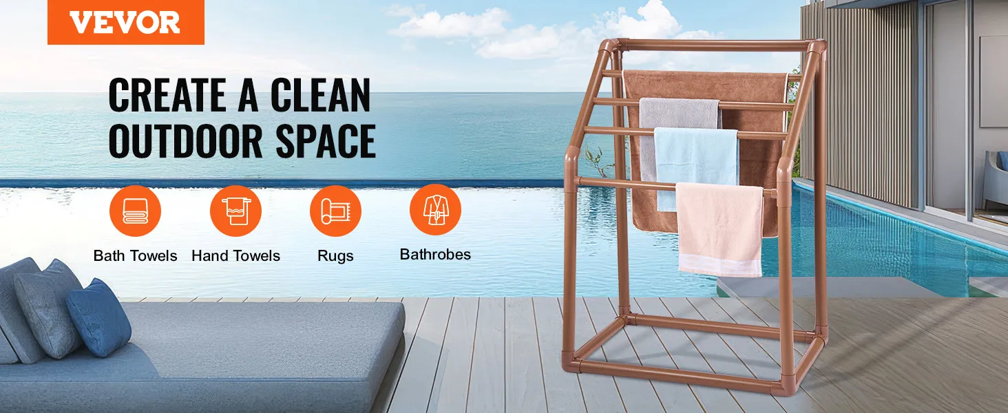 Zewnętrzny wieszak na ręczniki VEVOR jest łatwy do demontażu. Dzięki temu jest to opcja przechowywania oszczędzająca miejsce. Możesz przechowywać go w małych przestrzeniach, gdy nie jest używany. Jest idealny do przechowywania sezonowego lub w mniejszych przestrzeniach. Łatwy demontaż oszczędza czas i wysiłek. Jest idealny dla tych, którzy potrzebują praktycznego rozwiązania do przechowywania. Trapezowy kształt wieszaka pomaga mu również zmieścić się w mniejszych przestrzeniach magazynowych. Będzie więc wygodny dla każdego użytkownika. Ciesz się higieniczną i zorganizowaną przestrzenią dzięki temu praktycznemu stojakowi.