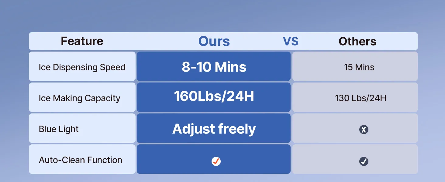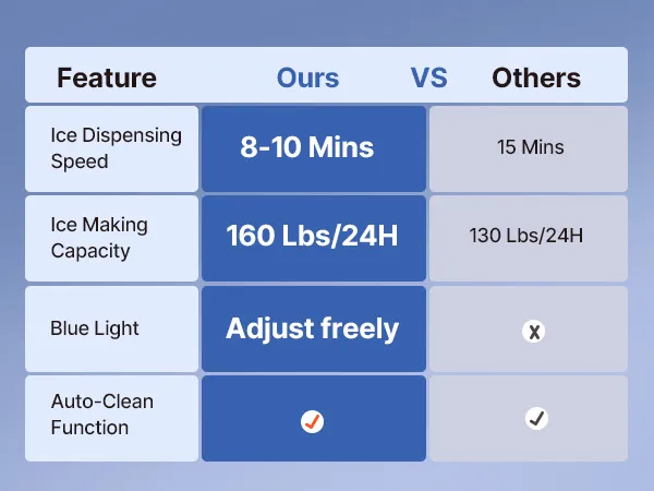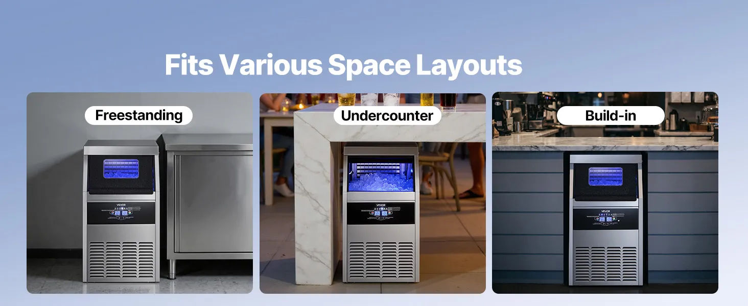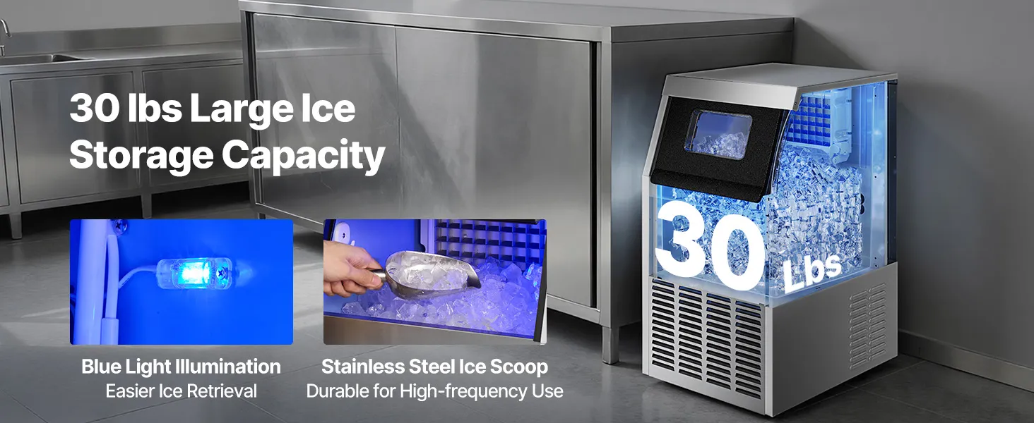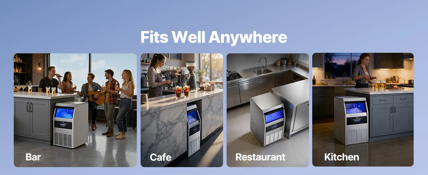 Wysoka wydajność i duża pojemność: Ta komercyjna kostkarka do lodu produkuje do 73 kg (160 funtów) lodu dziennie i wytwarza 55 kostek lodu w ciągu 8–10 minut. Dzięki 14-kilogramowemu (30 funtów) zbiornikowi na lód, urządzenie nadaje się do przygotowania ponad 720 napojów i zapewnia płynną pracę.