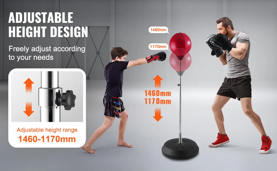 Worek bokserski VEVOR pomaga poprawić wydolność cardio. Wspiera również precyzyjne treningi. Niezależnie od tego, czy trenujesz sztuki walki, czy po prostu chcesz wykonać korzystny trening, ten worek spełni Twoje potrzeby. Ten worek ma regulowaną wysokość i jest idealny zarówno dla dzieci, jak i dorosłych. Możesz zachować stabilność i doskonały rytm podczas użytkowania, nie martwiąc się o jego przewrócenie. Dzięki temu jest to niezawodne narzędzie do poważnych sesji treningowych. Użyj go, aby zbudować wytrzymałość i zwiększyć ogólną sprawność fizyczną.