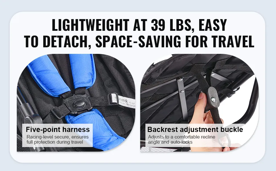 Każdy krok w podróży Twojego dziecka jest kluczowy dla bezpieczeństwa! Ten wózek jest wyposażony w 5-punktowe pasy bezpieczeństwa, które zapewniają bezpieczeństwo podczas wyścigów, gwarantując Twojemu dziecku pełne bezpieczeństwo. Klamra z regulacją oparcia blokuje się automatycznie.