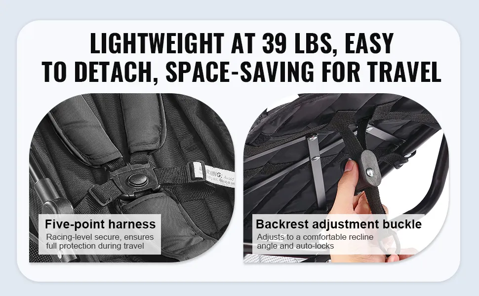 Każdy krok w podróży Twojego dziecka jest kluczowy dla bezpieczeństwa! Ten wózek jest wyposażony w 5-punktowe pasy bezpieczeństwa, które zapewniają bezpieczeństwo podczas wyścigów, gwarantując Twojemu dziecku pełne bezpieczeństwo. Klamra z regulacją oparcia blokuje się automatycznie.